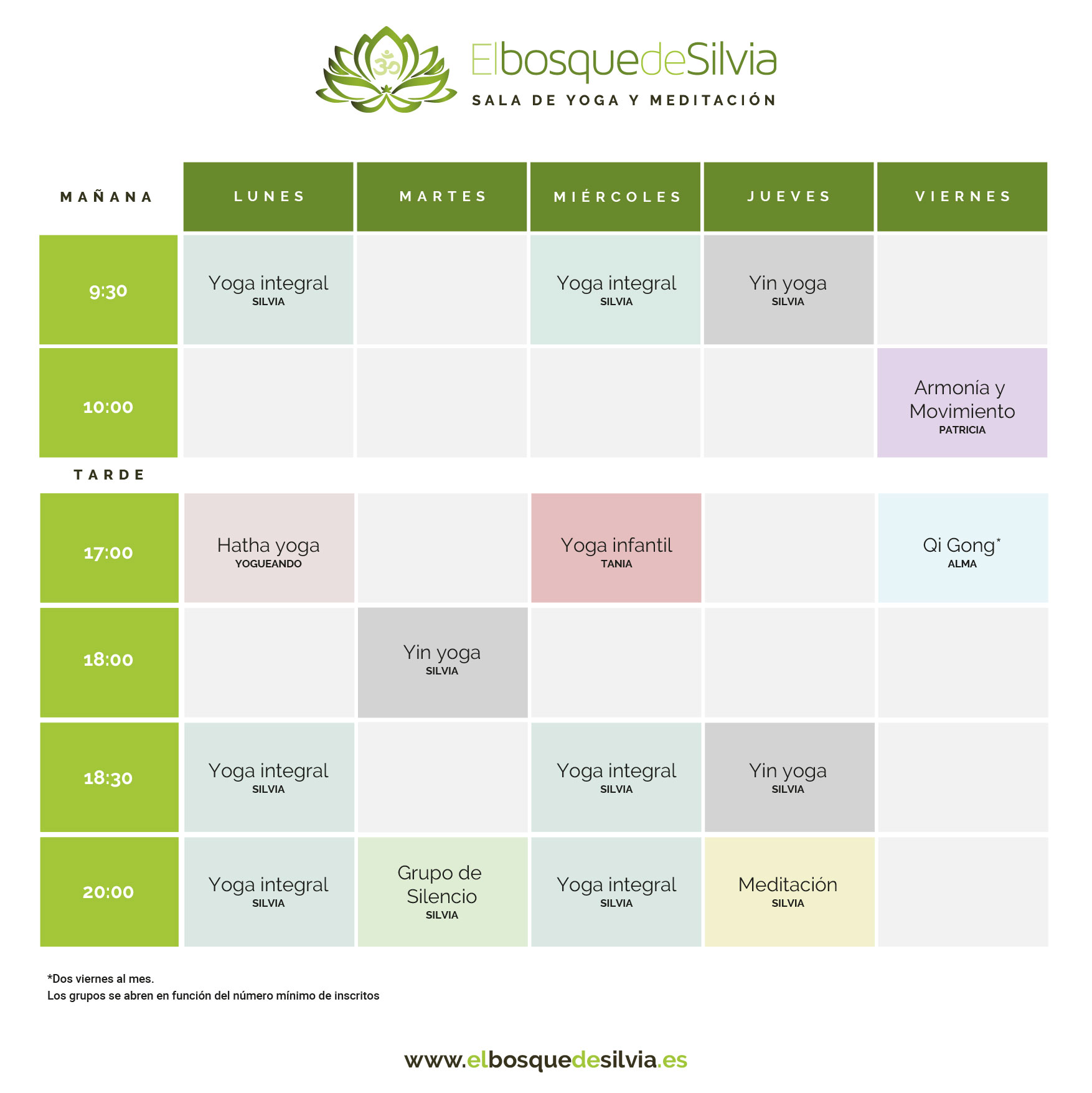 Todas las clases en el curso 2024/2025. Estos horarios pueden sufrir modificaciones en verano.